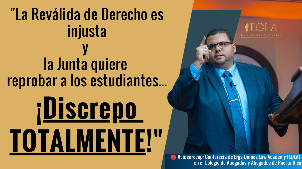 El campo legal de Puerto Rico fue testigo de una sacudida revolucionaria en un evento reciente organizado por el Colegio de Abogados y Abogadas de Puerto Rico (CAAPR). En la Conferencia «Mitos y realidades de la reválida de Derecho y cómo prepararse estratégicamente para aprobarla: Énfasis en las figuras jurídicas más frecuentes sobre Derecho Civil«, el Fundador & CEO de Erga Omnes Law Academy (EOLA), el Lcdo. Alexander G. Reynoso Vázquez, impartió una conferencia que desafió las arraigadas creencias sobre la reválida de derecho.