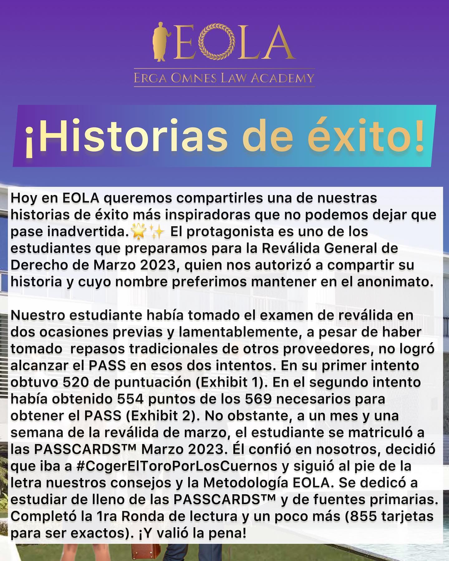 ¡Casi dos tercios del contenido de las preguntas de discusión estaban cubiertos previamente en nuestras PASSCARDS™, organizadas, actualizadas y comentadas por EOLA! Y eso no es todo: nos enorgullece informar que logramos un asombroso 100% de aprobación entre los estudiantes que completaron al menos una ronda de estudio con nuestras PASSCARDS™.