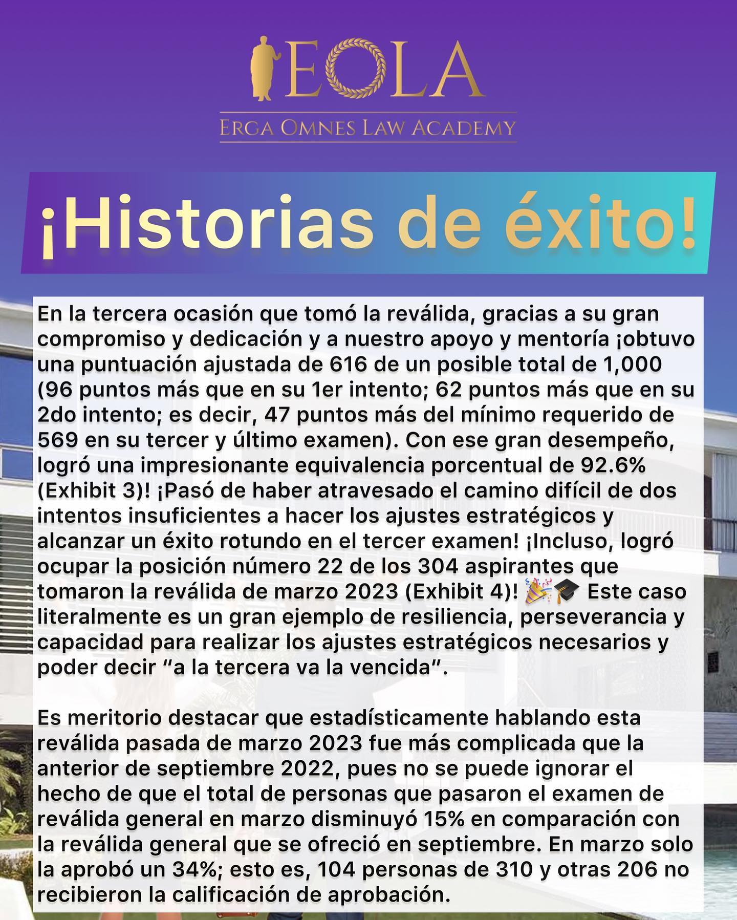 Descarga el PDF con la Comparación Estadística de EOLA para obtener más detalles sobre nuestro éxito y descubre por qué somos la elección número uno para tu preparación para la reválida.